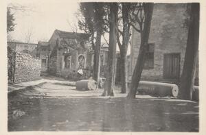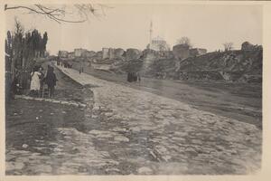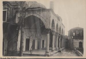 Depicts the ruined mosque probably near Istanbul. Handwritten caption on the bottom of the photograph: “Mir Achor Mosque”.