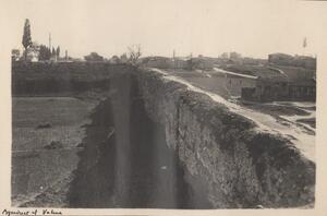 Depicts the ruins of the Theodosian walls, probably near Lykos Valley. Handwritten caption on the bottom of the photograph: “Lykos Valley”.
