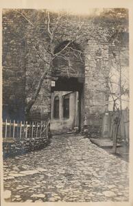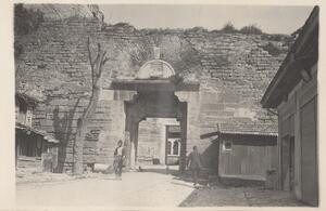Depicts the Greek fortress at the town of Yedikule (Seven towers), at Faith/Istanbul Istanbul. Handwritten caption on the bottom of the photgraph: “Ni Jedi Koul[?]”.