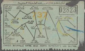 Probably for a train with a map of different locations printed on it. Arabic script (presumably Ottoman Turkish) and French. No caption.