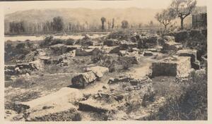 Depicts the ruins, probably of the Temple of Artemis. Handwritten captions: “Orthia Site." and "WBCB”.