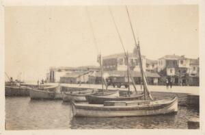 Depicts boats in the harbour of Yithion/Gytheio/Githion. Handwritten caption: “Gythion”.