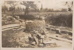 Depicts the ruins of the theatre of Yithion/Gytheio/Githion and a water well. Handwritten captions: “Gythion theatre." and "MH.”