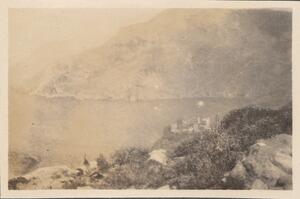 Depicts the town and the sea from the distance. Handwritten captions: “Marmari." and "MH”.