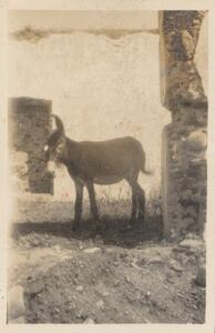 Depicts a donkey, possibly in Sparta. Handwritten caption “Sarandoules ‘donkey in church”.