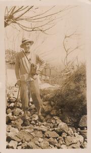 Depicts probably a B.S.A. member at an excavation site. (Maybe Charles T. Seltman?), near Sparta. No caption.