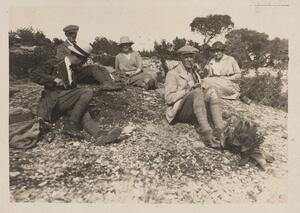 Depicts Winifred Lamb, Francis B Welch, Charles T. Seltman, Isabel Seltman and an unidentified man at Sparta. No caption.