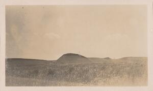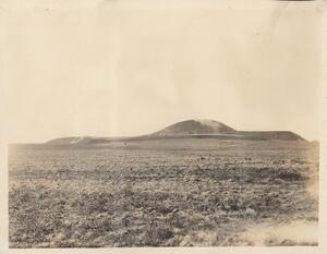 Depicts the landscape by the excavation site with the mound at the background. No caption.