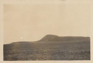 Depicts view of the Landscape at the mound. Handwritten caption “Vardanoftsa”.