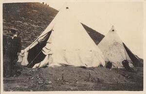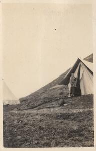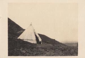 Depicts Winifred Lamb’s tent at Vardarovca. Handwritten caption: "My Tent".