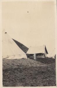 Depicts Harold Keen and William Cuttle’s tent and a mess tent. Handwritten caption “Keen & Cuttle’s Tent. Mess tent” and crossed out above Mess tent: “Dimitris Tent”.
