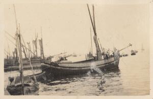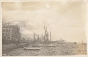 Depicts the harbour of Thessaloniki, with the boats. Handwritten caption: “The port. Salonika. April 1.-2 1925”.
