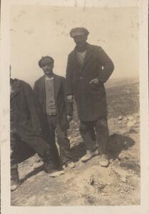 Depicts two of the workmen of that excavation. Handwritten caption: “Proedros. S. Adamides”.