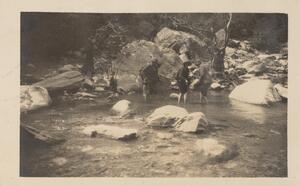 Depicts Winifred Lamb, Vivien Whitfield and Elaine Tankard at the river or water pond, getting their feet wet. Handwritten captions “W.L. V.W. E.T.”