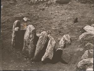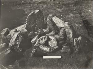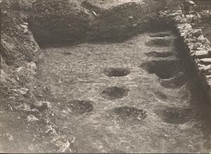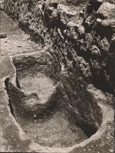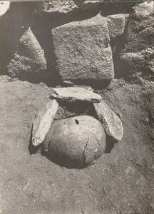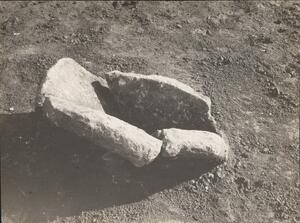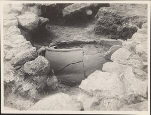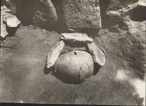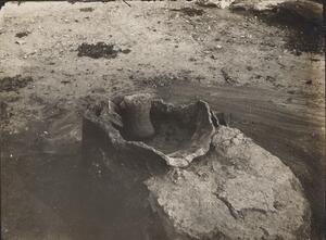 Depicts the remaining of a sacred pot at the excavation at Thermi. Handwritten caption “’Sacred’ pot of E (without cover)”