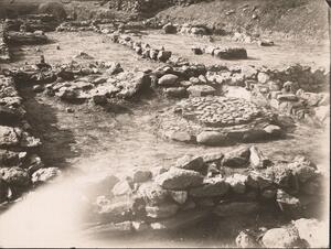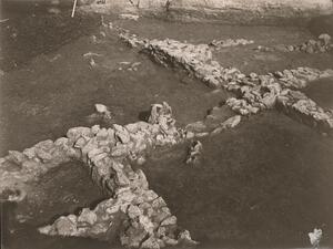 Depicts the remaining of a building at the excavation at Thermi. Handwritten caption “A. Vw city. Fifth (…?) in process of excavation” [or Λ]