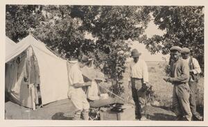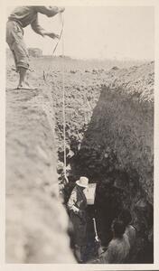 Depicts people at the excavation at a sondage, maybe Thermi. No caption.