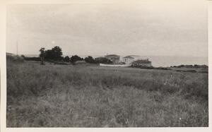 Depicts a building, property, with a fence around the field in front of it. No caption.