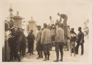 Depicts a car and a lot of people around him, probably loading (or unloading) some of the finds. No caption.