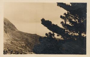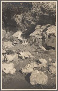 Depicts two people (probably one is Winifred Lamb), having a break in the middle of nowhere, with rocks around them. No caption.