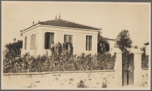 Depicts a house, probably near Chios, and four men standing outside of it. No caption.