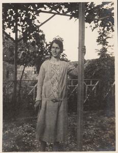 Depicts her, posing. Handwritten caption “Our neighbour Helene”. Enlarged version of LAM/3/1/11/82