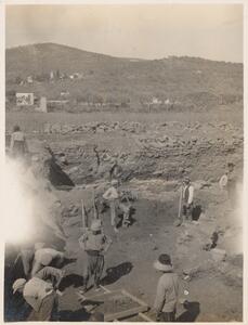 Depicts a group of workmen at the excavation, probably Thermi. No caption.