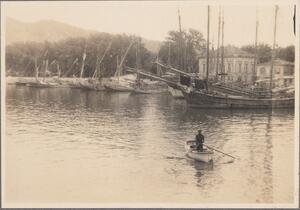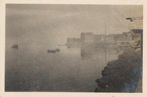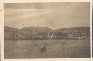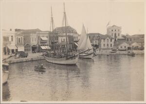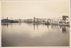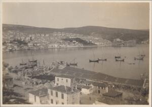 Depicts the view of the harbour of an unknown city, probably Ayvali, at the Cunda Island (Turkey). No caption.