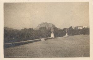 Depicts a view of a castle, probably the one at Militini. No caption.