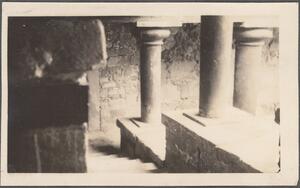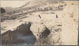 Depicts a line of pots within the ruins on Knossos, Crete. Handwritten caption “Knossos – 3.4.21”