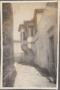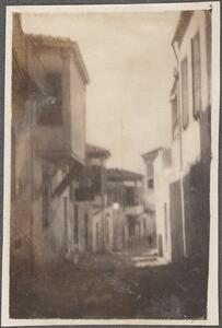 Depicts the buildings in the street of Candia. Handwritten caption “Street in Candia”.