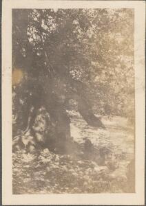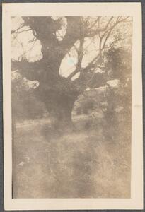 Depicts Mary Herford (later known as Braunholtz) filling her water bottle from a spring under a plain tree. Handwritten caption “Andritsaina to Zaccharo. 18.3.21. The plain tree with the spring- H. filling her water bottle”.