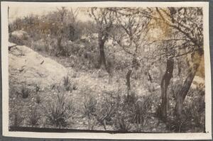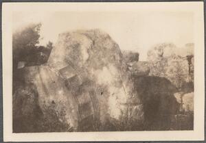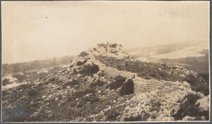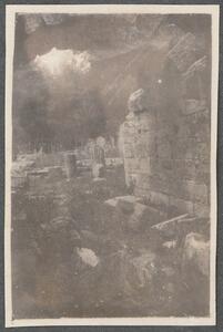 Depicts ruins in the forest near Slanitsia, Peloponnese. Handwritten caption “Greek fortress nr Slanityia”.