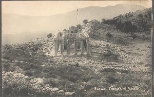 Print (commercial) showing the ruins of the Temple of Apollo (Bassae), with “Bassae, Temple of Apollo. 285 Bassae, Temple of Apollo” inscribed on the bottom of it. No further caption.