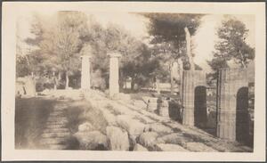 Depicts the ruins of an arch at Olympia. Handwritten caption “Entrance to stadium”.