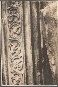 Depicts a detail of a decoration from the ruins of the Byzantine church (?) at Olympia. Handwritten caption “Byzantine carving”.