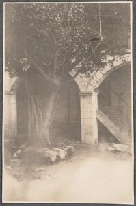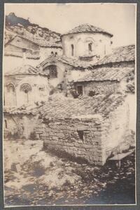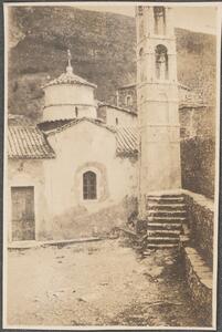 Depicts Ladas’ Holy Church of the Taxiarchs and belfry. Handwritten caption “Langada pass – Lada – Church & belfry”