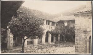 Shows the monastery of Osiu Meletios Kytheron. Handwritten caption “H. Meletios”