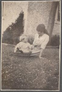 Depicts members of the Noel-Baker family, possibly Irene and his son Francis. No caption, but Helen Waterhouse wrote “ACHMETAGA Noel-Baker Family” at the top of this page.