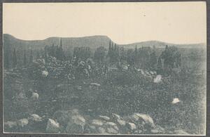 Depicts the ruins at Mycenae, with an unidentified man at the very background. Handwritten caption: “the grave circle”. Under that, with the same handwriting, is written CB.