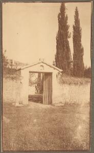 Depicts the entrance of the monastery of St. Basil that the American School used as a dig house when the Zygouries excavation. Handwritten caption "The monastery - The dig house".