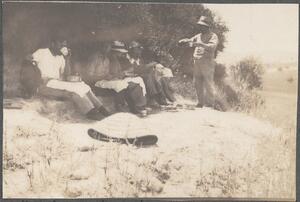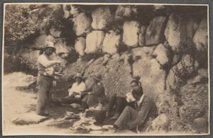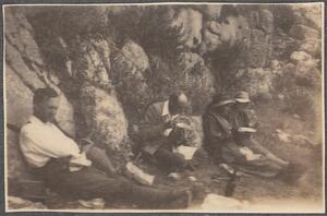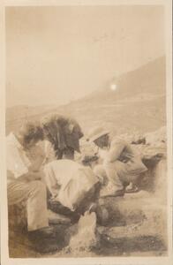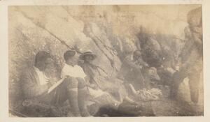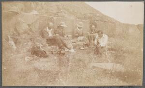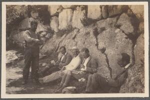 Depicts Georgi, Lilian Chandler, Mary Herford (later known as Braunholtz), Axel Boethius and Alan Wace resting. No caption.
