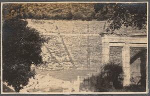 Depicts the ruins of a theatre. Handwritten caption: “Epidaurus theatre. Epidauros”.