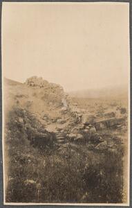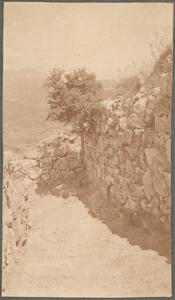 Depicts the ruins at Mycenae. Handwritten caption: “The ramp. To the right, the grave circle”.
