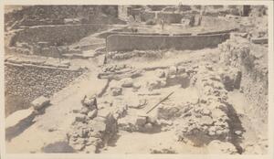 Depicts the excavation progress and materials used in the dig of Zygouries. Handwritten caption: “Zygouries. The town of (…) Pilkoi.”