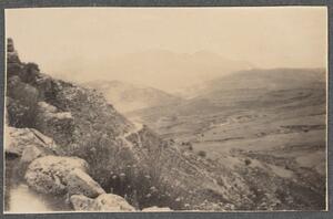 Depicts the landscape of Mycenae and the mountain. Handwritten caption: "Kyllene from the postern gate”.