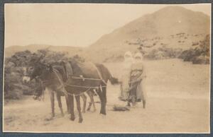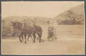 Depicts two local women and a thresher pulled by donkeys. No caption.