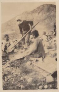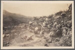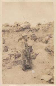 Depicts Manoli excavating at the ruins at Mycenae. Handwritten caption "Manoli".