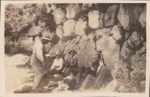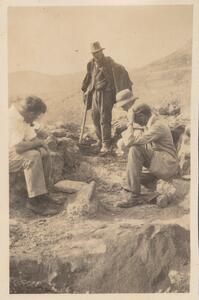 Depicts Mary Herford (later known as Braunholtz), Leicester Holland (ASCSA), Axel Boethuis, James P. Harland (ASCSA) and Rodney Young (ASCSA) at the Zygouries excavation. No caption.