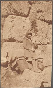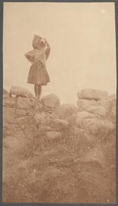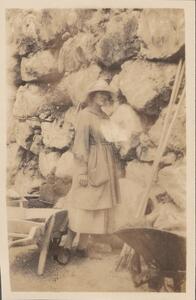 Depicts Winifred Lamb at the Mycenae excavation. Handwritten caption "W.L."